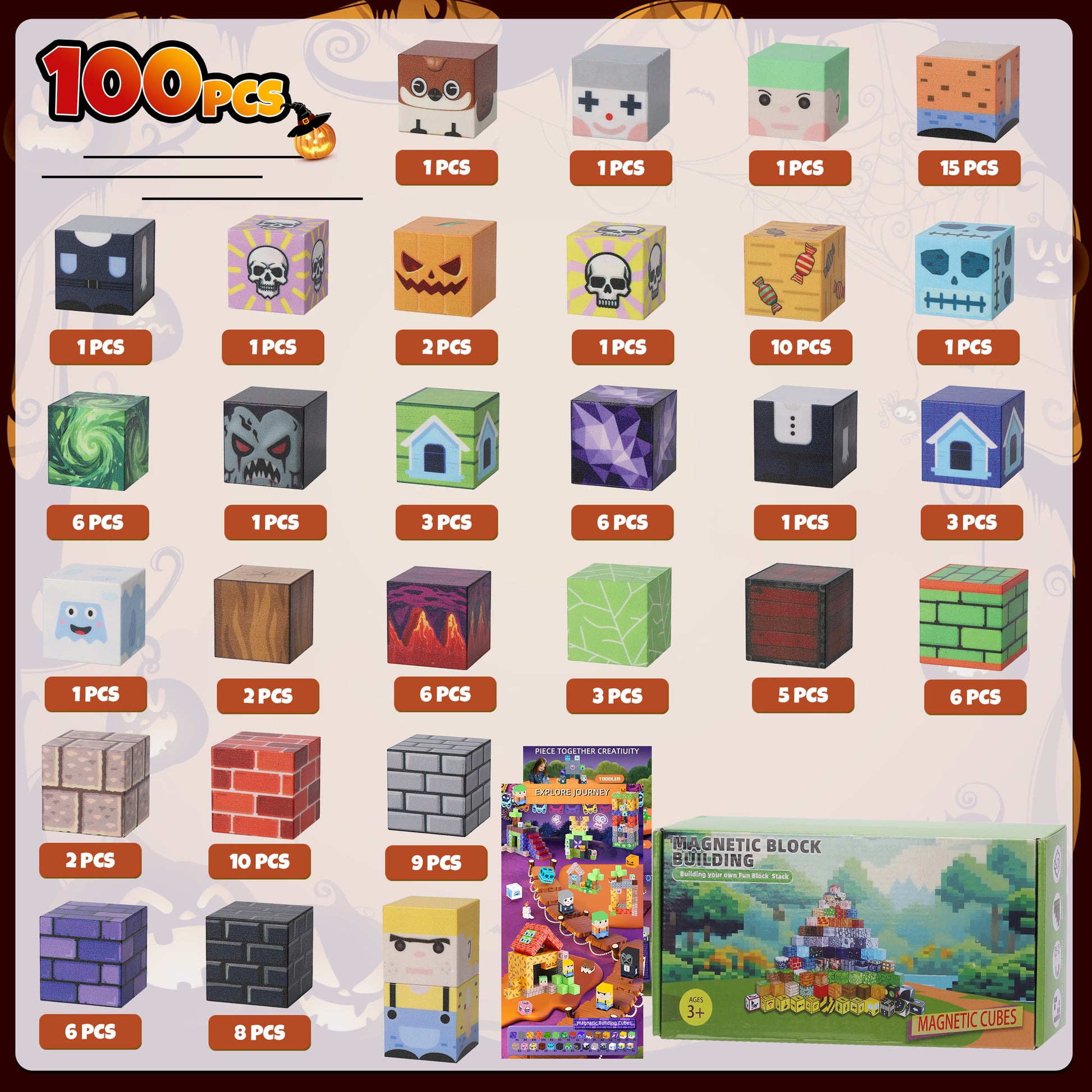 Crtynell 100PCS Magnetic Blocks - Build a Fantastic Adventure World Set for Boys & Girls Age 3-5 6-8, Sensory Toys for Toddlers Birthday Christma Gifts for 3+ Years Old Girls Boys