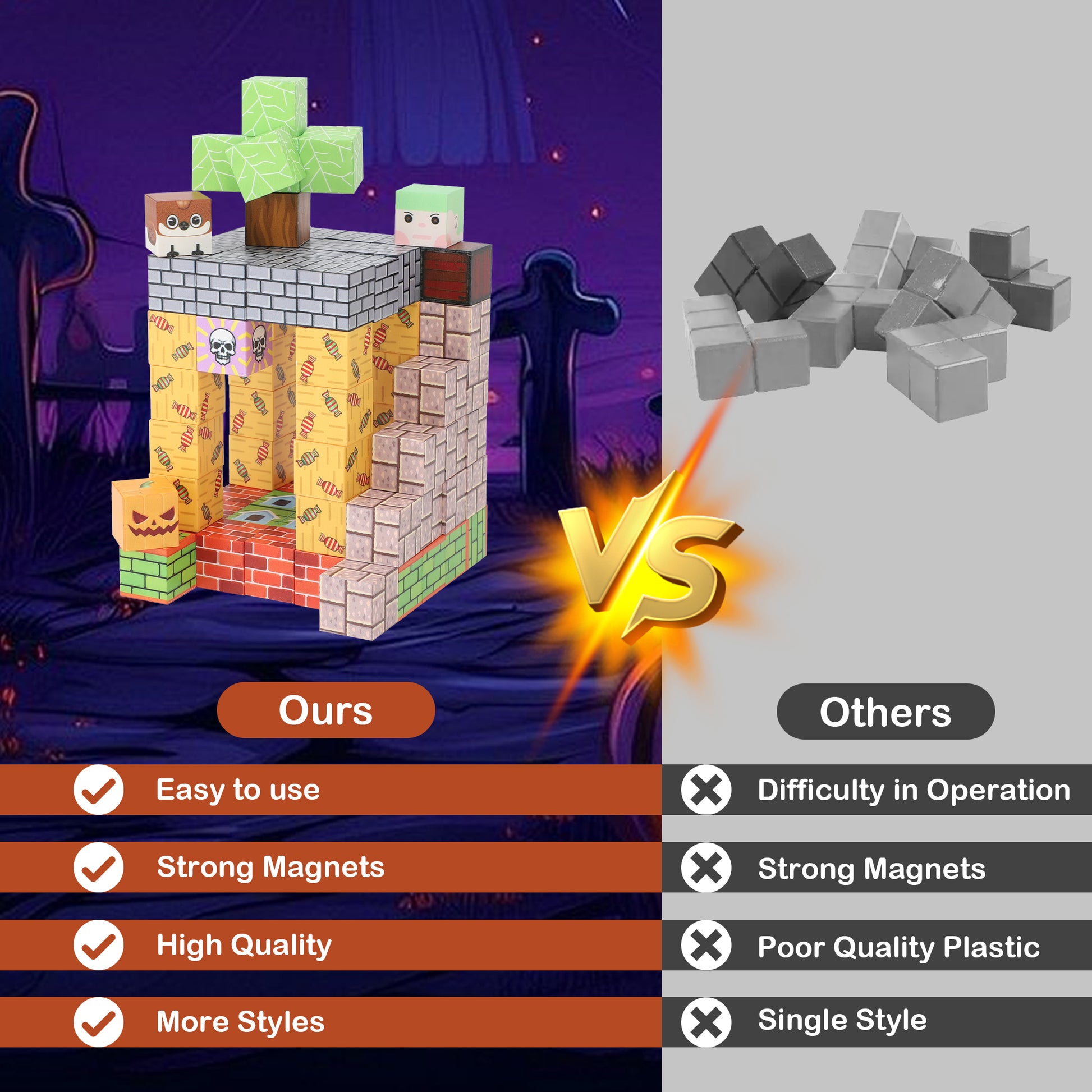 🧲[Build My Magnet World - Fantastic Adventure World]Get ready to simulate building a Adventure in "" Fantastic Adventure "" with this new magnetic Fantastic Adventure set, imagine the amazing stories that could happen in Adventure World, and start yourAdventure world adventure! Magnetic building blocks allow your child to travel to a world full of wonderfulRoad Track or a fantasy world full of possibilities! From simple to challenging builds, experience the fun of role-playing and dress-up toys! Let your children's imagination run wild in our magnetic open-ended toy set!💡[Perfect Sensory Toys for Kids]Magnetic building blocks provide children with a great way to learn, play and increase their confidence while giving them a better understanding of the world of construction. When playing with the blocks, the blocks will also rustle like little bells, which will attract the attention of toddlers and make them happy. Construction and building block toys unlock many skills for children. With this magnetic building block to build, rotate, destroy and rebuild, it helps to develop children's creative thinking, attention and patience, hand-eye coordination motor skills, cooperation skills, spatial and motor skills!😃[Toy Magnetic Set for Toddlers and Beginners]Unlike other magnet toys on the market, our magnetic cube set has super strong internal magnets, which makes it easier for toddlers over 3 years old to stick the cubes together and make the structure sturdy. The rounded edges and suitable size will not hurt small hands. The perfect toy can help children to have a deeper understanding of the world of structure and understand magnetism. Recommended toy gift for toddlers and children aged 6-8 years old.📖[Creative Fun Learning]Construction and building block toys unlock many skills for children. Building, rotating, destroying and rebuilding with this magnetic building block helps promote children's creative thinking, attention and patience, cooperation, space and motor skills. Comes with a creative manual to guide and inspire them to explore the magnetic dream world. It is a fun solo activity or activity with friends, and a great alternative to screen time.🎁[Best Gift for Kids]This is a children's toy suitable for classrooms, toddlers, preschoolers, teenagers, and is popular with boys and girls over 3 years old. Therefore, even young children can imagine and create the buildings of their dreams. Kids will have fun with this magnetic tile and learn through playing. A perfect educational gift for birthdays, Christmas, Children's Day, STEM and school activities. Make it the best choice for parent-child interactive games on weekends!