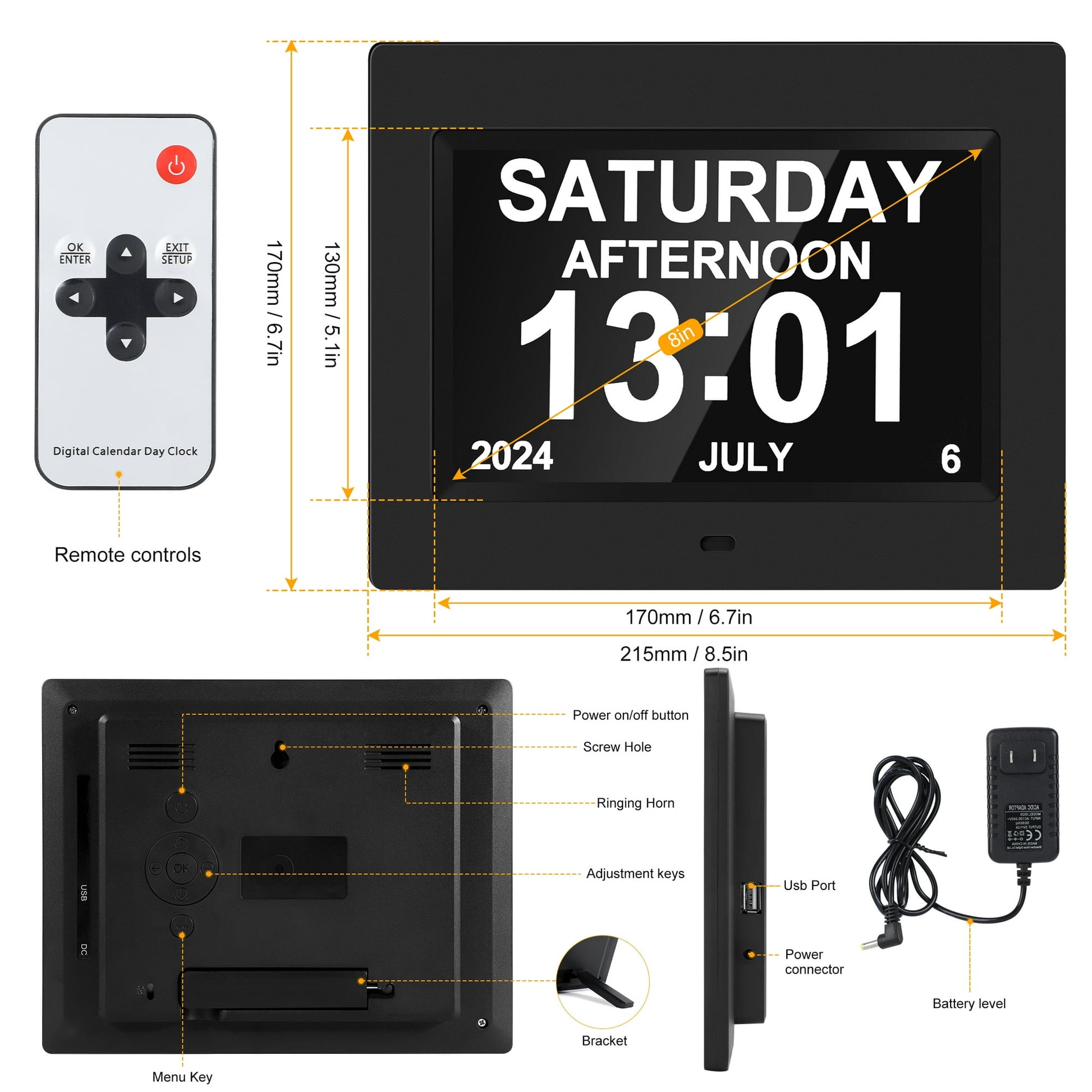 - ⏰【Multifunction】The Alarm Clock Is Not Only A Digital Clock, But Also A High-Resolution Electronic Photo Album, 7-Inch 1024*600/8-Inch 800*600