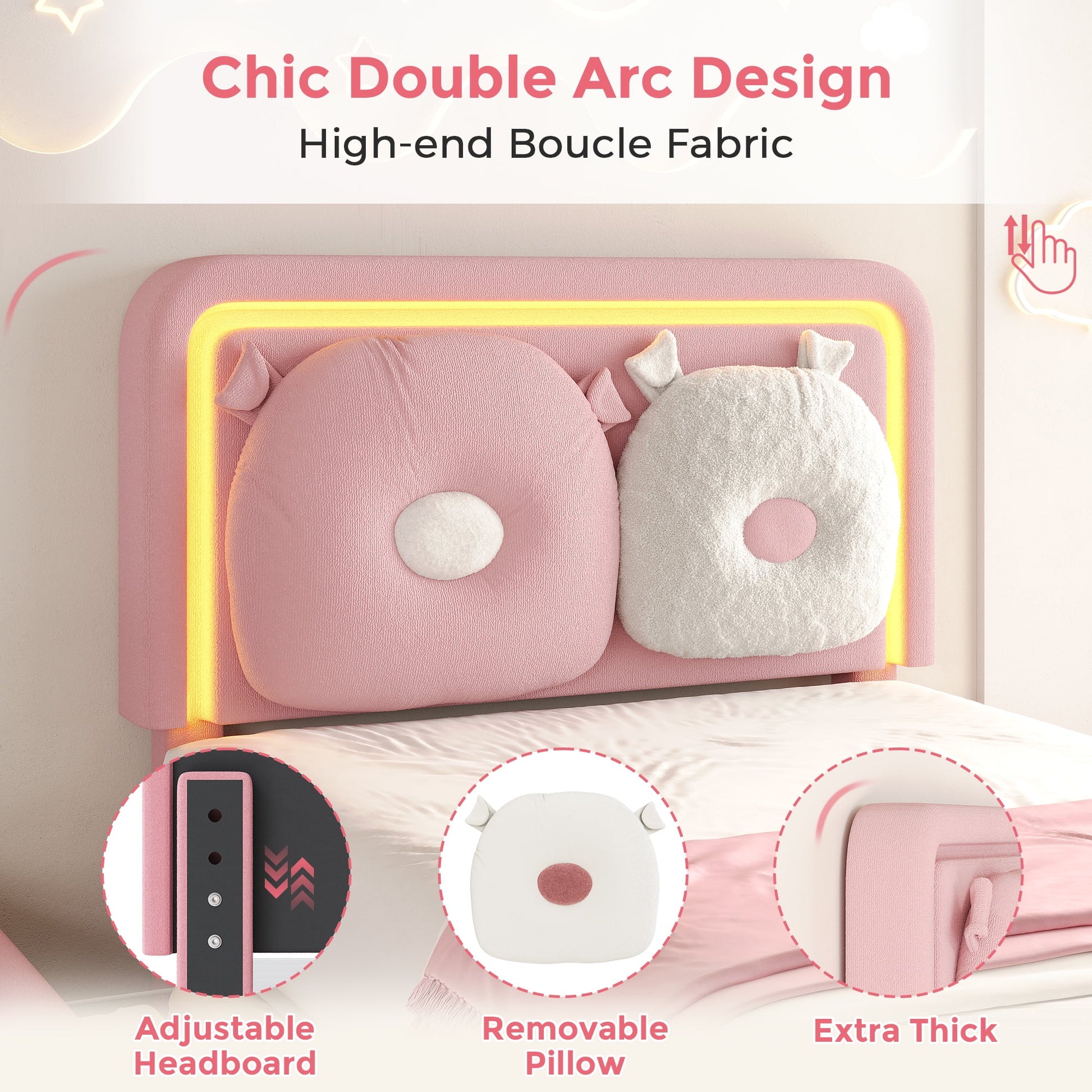 - Special Feature:Adjustable Double Headboard, Cute Removable Pillows, No Box Spring Needed, Underbed LED Light