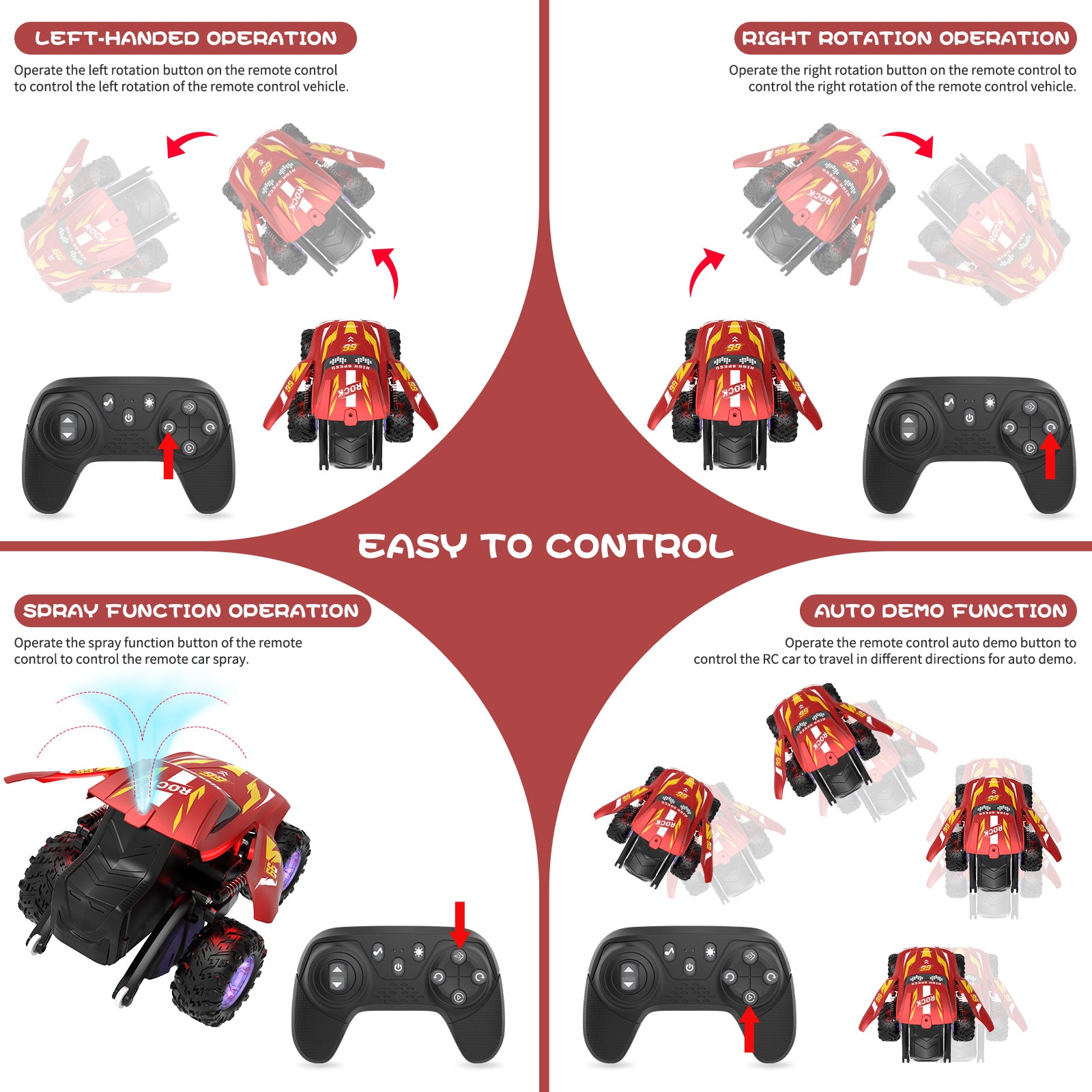 Loewten Remote Control Car,RC Stunt Cars Dancing Car with Spray and Colorful Light for Kids Christmas Birthday Gift,Red